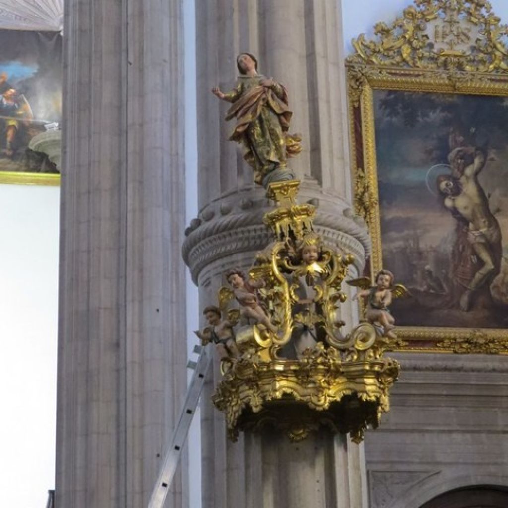 La imagen de la Esperanza era familiar para la responsable de Restauración del Cabildo, María Cárdenes, institución que hace 20 años costeó una intervención integral de los púlpitos que fue encargada a la especialista Carolina Besora Sánchez. Ahora se están analizando las causas de este percance y realizando el estudio de la estructura, con el objeto de definir una intervención que garantice su estabilidad física y devuelva la unidad estética del conjunto. Además, como medida preventiva, se revisará el otro púlpito situado a la izquierda del altar.