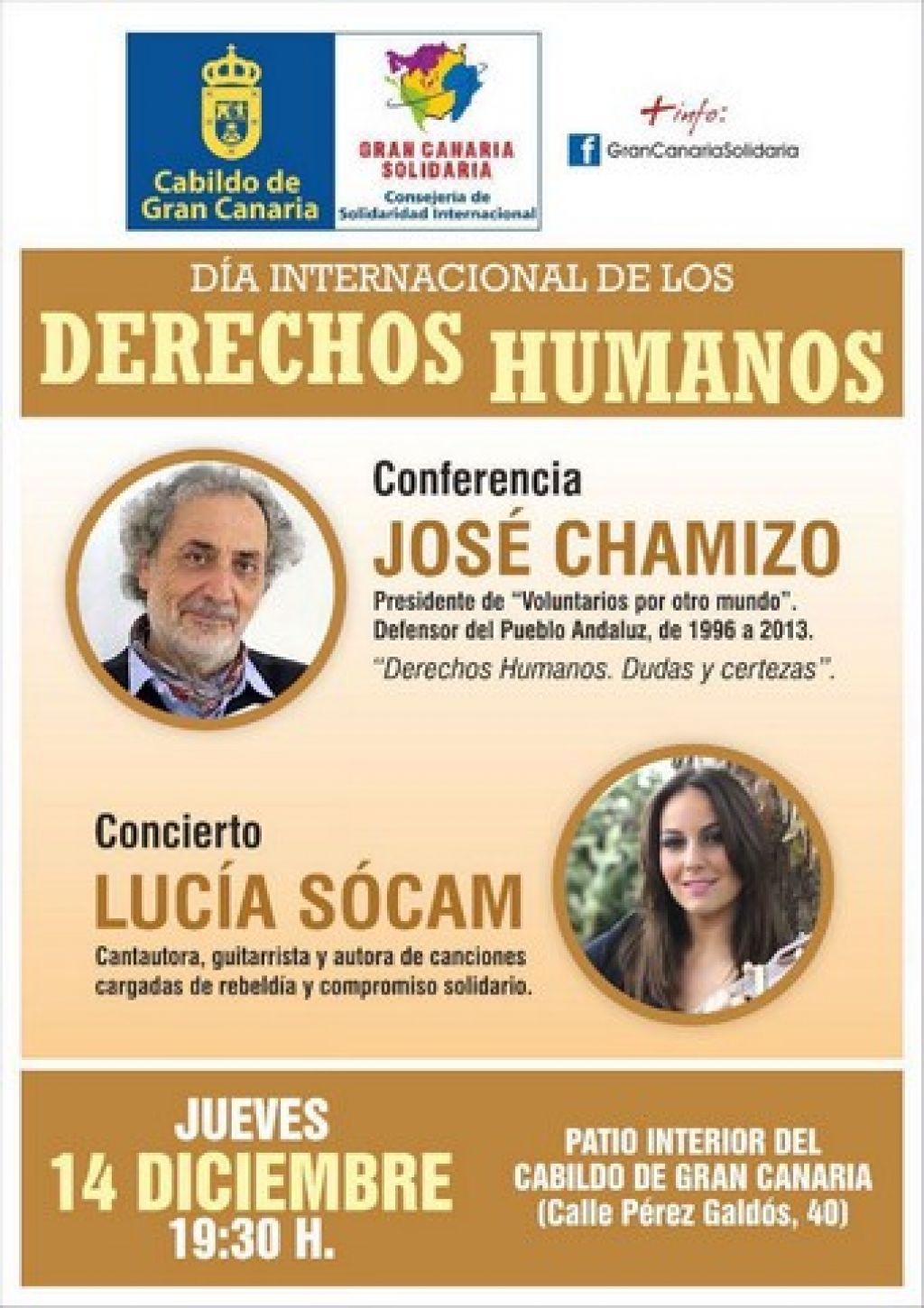 El Cabildo de Gran Canaria celebra este jueves el Día Internacional de los Derechos Humanos con una conferencia a cargo de José Chamizo, presidente de la asociación ‘Voluntarios por otro mundo’, y la música de la guitarrista y cantante Lucía Sócam, autora de canciones con letras de compromiso social con poemas de Alberti y de las mujeres de la Generación del 27.