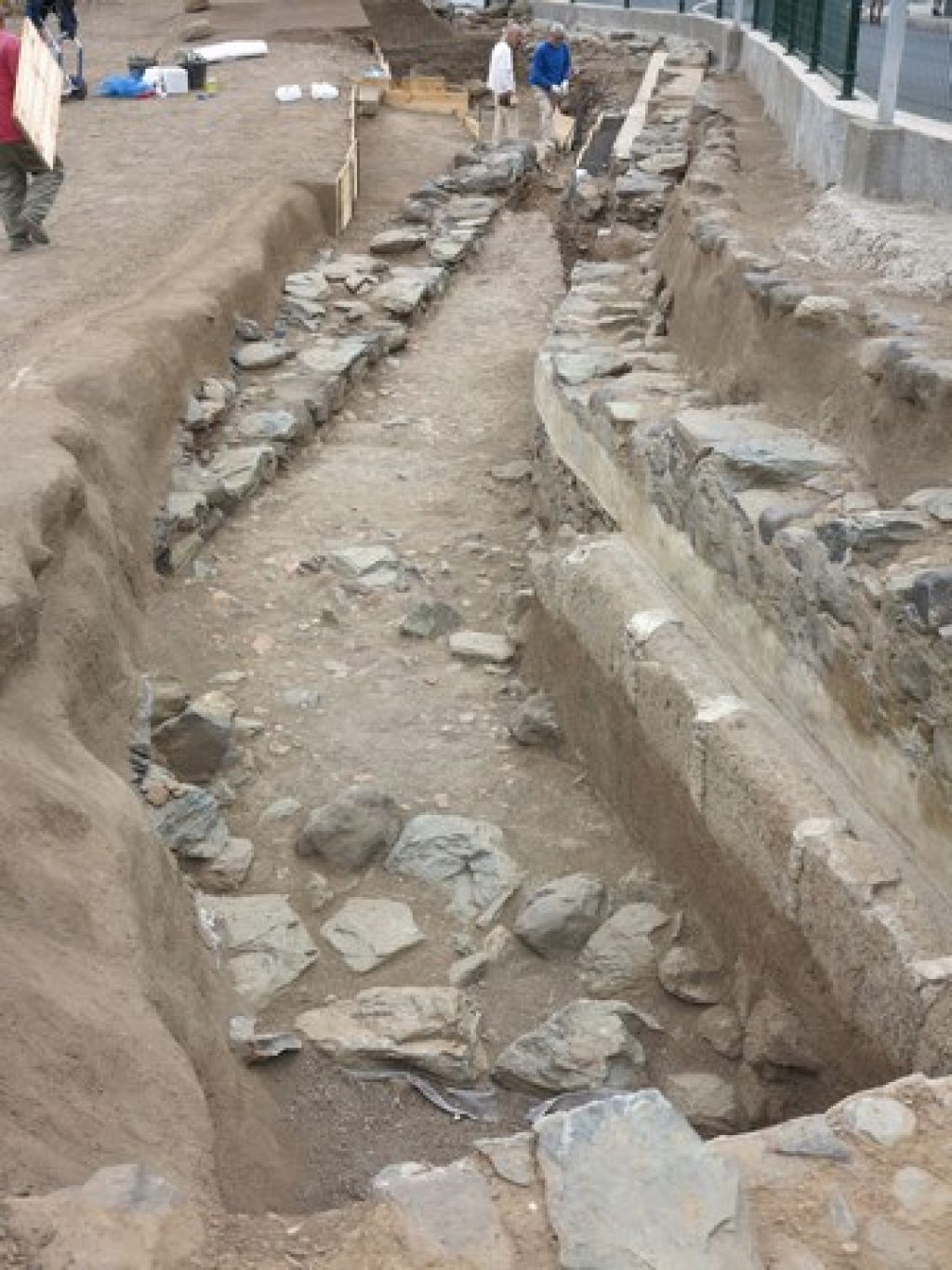 Los mencionados trabajos que realiza la empresa Arqueocanarias y que financia la Dirección General de Patrimonio Cultural del Gobierno de Canarias, han permitido a los arqueólogos recuperar los restos del antiguo ingenio azucarero del siglo XV descubierto el pasado año 2016 cuando se llevaba a cabo la obra de ensanche y mejora de la calle Ladera de Soleto, muy cerca del polideportivo Beatriz Mendoza de Santa María de Guía.