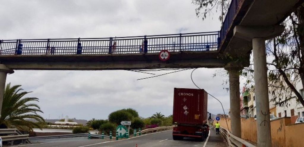 Los daños detectados por los técnicos del Cabildo de Gran Canaria en la pasarela peatonal de la carretera del centro (GC-110) a la altura de El Secadero provocados por la colisión de un camión han obligado al cierre del tramo de la vía entre la Tropical y El Secadero en sentido Tarifa por motivos de seguridad.