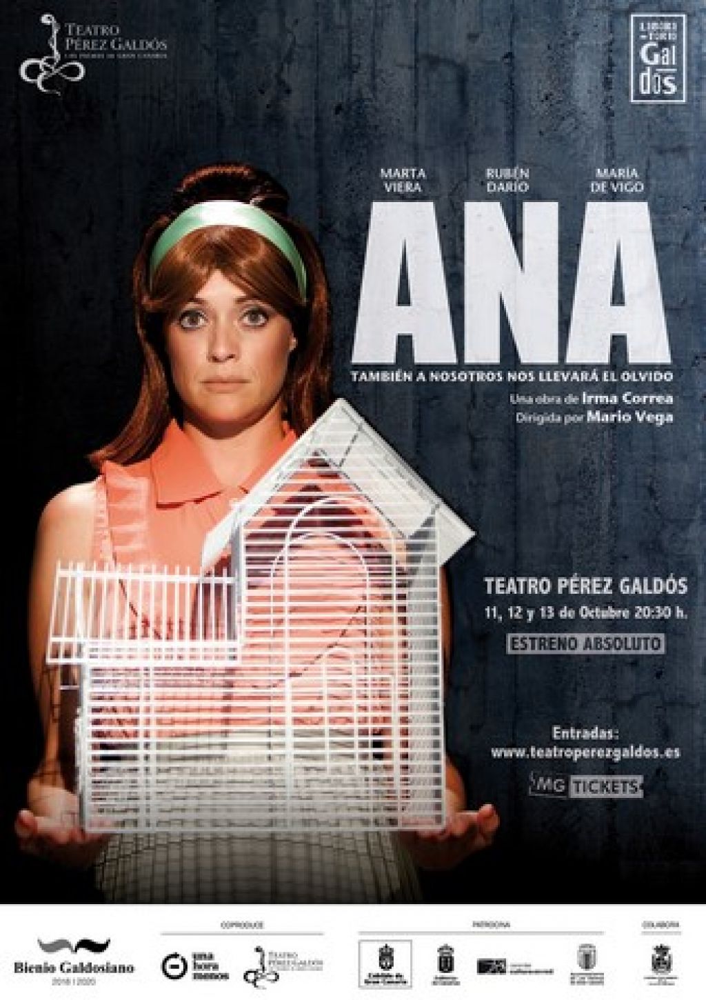 Los responsables del proyecto desean que esta actividad de co-creación y encuentro con el público se lea como una rica posibilidad de aprendizaje y conocimiento más profundo de los múltiples mecanismos que se ponen en marcha en las artes escénicas a la hora de iniciar una producción de envergadura. El primer montaje previsto, ‘Ana. También a nosotros nos llevará el olvido’, está dirigido por Mario Vega basándose en un texto escrito por la dramaturga canaria Irma Correa, cuyo estreno tendrá lugar del 11 al 13 de octubre en el Teatro Pérez Galdós. Las entradas para esta primera entrega ya están a la venta al precio de 15 euros.