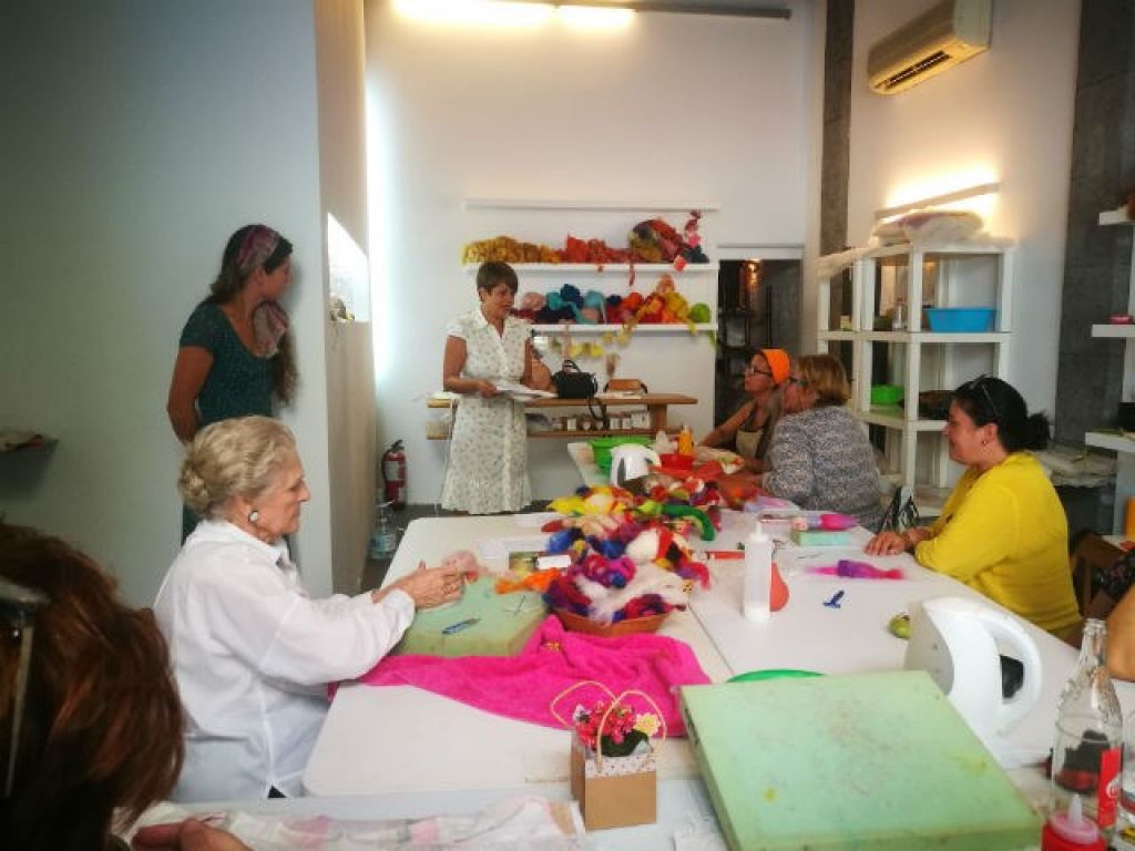Bisutería, muñecos, flores y hasta bolsos pudieron hacer los discípulos tras conocer esta técnica que permite crear un material textil que no es un tejido porque no se teje, sino que se realiza con fibras de lana de oveja que se adhieren entre sí con agua caliente y jabón, más el uso de las manos para lograr hacerla compacta.