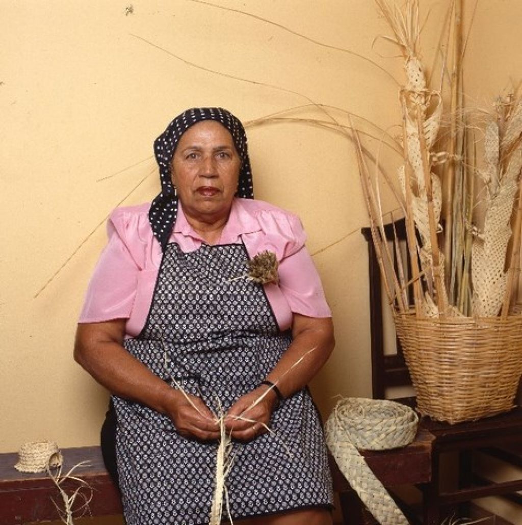 La más longeva de los artesanos premiados aprendió este oficio junto a su madre porque era una práctica que realizaban todas las mujeres de la familia. Así comenzó a elaborar diferentes modelos de sombreros, esteras y serones. Desde entonces ha trabajado la palma para vender los artículos y también ha enseñado esta labor en riesgo de desaparecer. Aunque ya está retirada, participa en ocasiones en los cursos de palma que imparte el Proyecto Comunitario de la Aldea.
