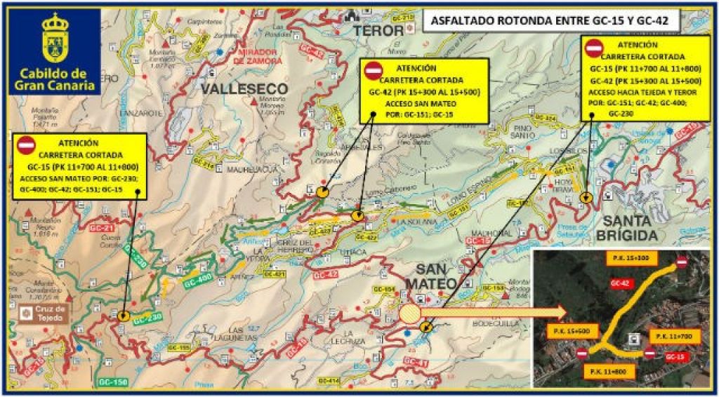 El Cabildo de Gran Canaria inicia mañana el reasfaltado de la rotonda ubicada a la salida del casco del pueblo de San Mateo y de los ramales de acceso hacia Tejeda (GC-15) y hacia Teror (GC-42) con un importe de 780.000 euros, informa el consejero de Obras Públicas e Infraestructuras, Ángel Víctor Torres.