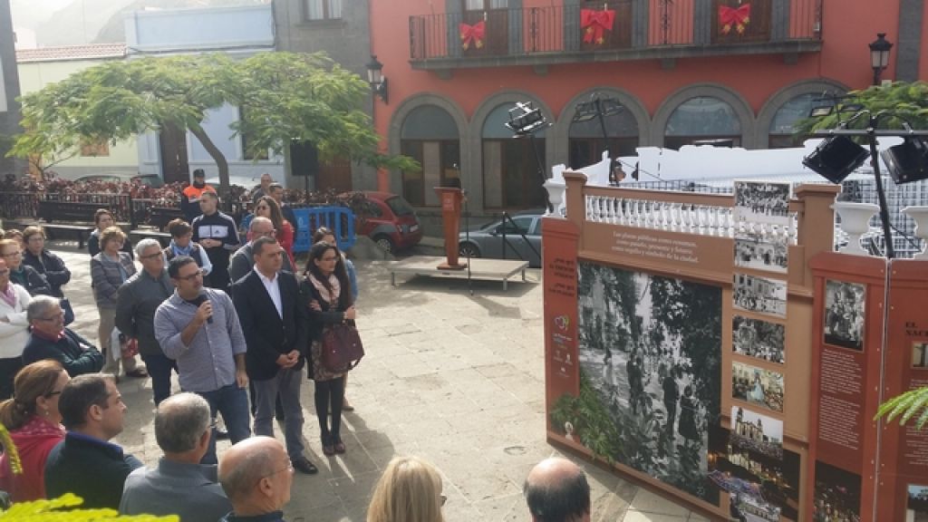 El alcalde de Guía, Pedro Rodríguez, acompañado de la concejal de Participación Ciudadana, Ainhoa Martín, y el técnico municipal, Javier Estévez, inauguró hoy la exposición “Las Plazas que sueñas, creas y vives”, primer acto del Proceso Participativo que pone en marcha el Ayuntamiento para “que decidamos entre todos cómo recuperar y en qué condiciones queremos dejar a las generaciones futuras este precioso legado, nuestras plazas”, señaló el primer edil. Tras recordar que estos espacios públicos fueron en el pasado el “corazón de esta Ciudad” el alcalde explicó que con esta exposición, que permanecerá instalada en la Plaza Chica durante un mes- se abre un proceso para que sean los vecinos y vecinas de Guía “los que nos ayuden a pensar y decidir qué actuaciones debemos promover para recuperar la importancia y el atractivo que nuestras plazas tuvieron en el pasado”.