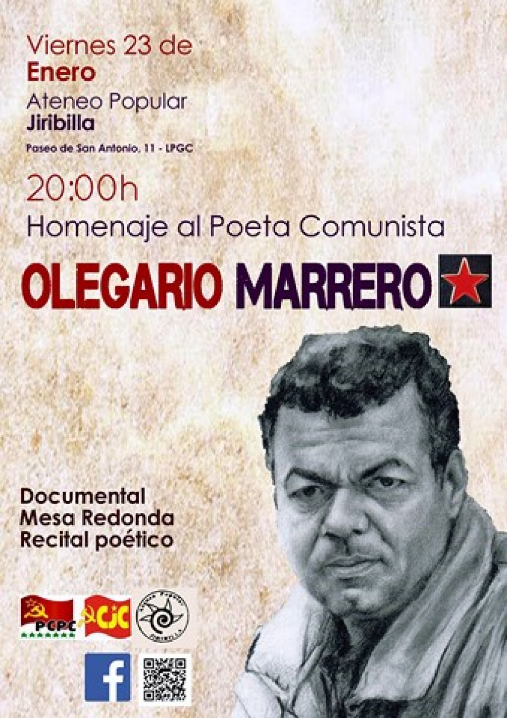 Cartel del homenaje al Poeta Comunista Olegario Marrero