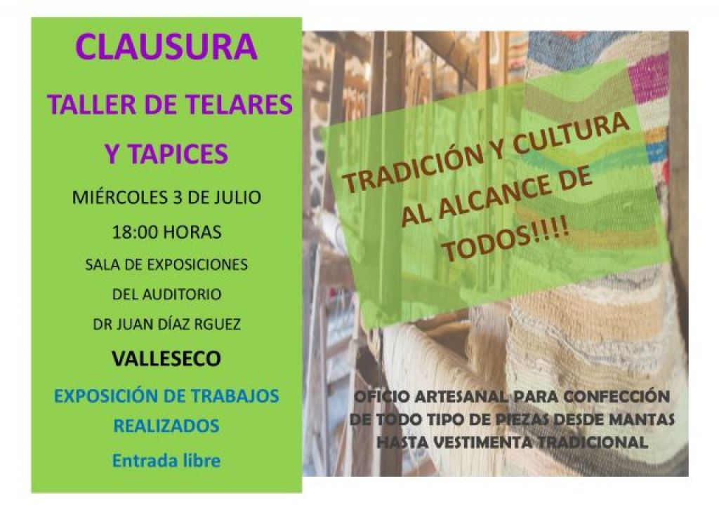 La Universidad Popular “Teodoro Cardoso León” de Valleseco, que gestiona el edil, Jesús Ramón Pérez Rodríguez, han ideado para la jornada de este miércoles 3 de julio, el cierre a la primera edición del taller “Telares y tapices”.