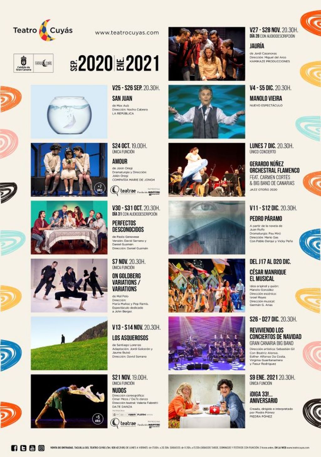 Tras concluir este lunes su campaña de abonos para la primera parte de la temporada 2020/2021, el Teatro Cuyás inicia el miércoles, en taquilla y a través de su página web (www.teatrocuyas.com), la venta de entradas para público general de los trece espectáculos que conforman su nueva programación, la cual tiene previsto arrancar los próximos 25 y 26 de septiembre con el estreno de ‘San Juan’, de Teatro La República.