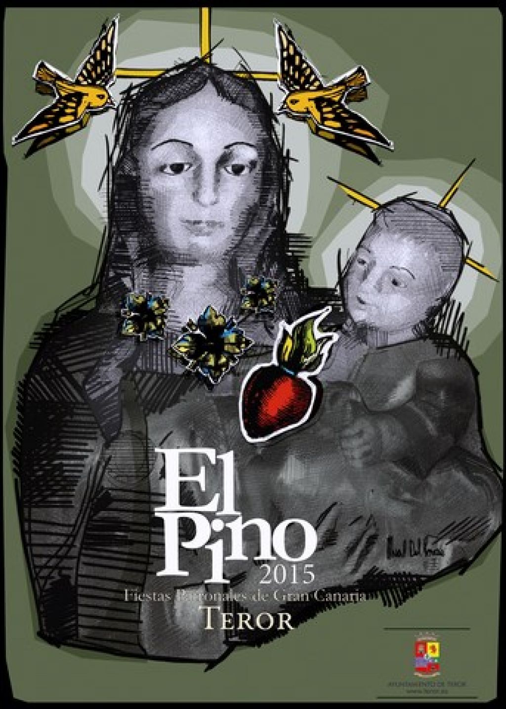 El artista terorense Misael del Rosario Macías ha puesto imagen a la Fiesta del Pino 2015 con un cartel anunciador que representa "el amor de una madre a sus hjos", según ha explicado el autor. "El cartel está centrado en dar valor a la mirada de la imagen de la virgen que representa el amor de una madre hacia su hijo, en este caso, sus hijos, los canarios".