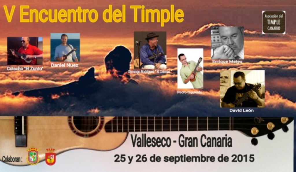 Evento organizado por la Asociación del Timple Canario y la colaboración del Ayuntamiento de Valleseco y el Cabildo de Gran Canaria, siendo en primer encuentro que acoge la Isla. Para la jornada del sábado se contara con la presencia del presidente del Cabildo de Gran Canaria, Antonio Morales, el consejero de Cooperación Institucional, Carmelo Ramírez y el consejero de Cultura, Carlos Ruiz. Tras el éxito de las anteriores ediciones, donde los amantes del timple crearon el pasado año la Asociación del Timple Canario en Tenerife, el colectivo ha decidido volver a organizar un quinto encuentro que tendrá lugar en esta ocasión en la Isla de Gran Canaria, concretamente este viernes 25 y sábado 26 de septiembre en el municipio de Valleseco. Las jornadas tienen por objetivo defender y difundir un instrumento musical que identifica a la cultura del pueblo canario y sentar las bases de la enseñanza reglada del timple en todo el archipiélago.