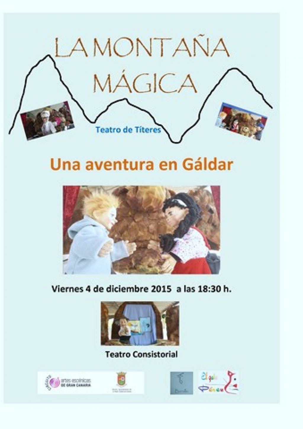 Arranca la programación de Navidad y Reyes diseñada por la concejalía de Cultura y Fiestas del Ayuntamiento de Gáldar que dirige Julio Mateo Castillo. Y lo hace ofreciendo este viernes, a las 18.30 horas, en el Teatro Consistorial el espectáculo de títeres La Montaña Mágica, que tivo que ser suspendida en el mes de octubre por las inclemencias del tiempo.