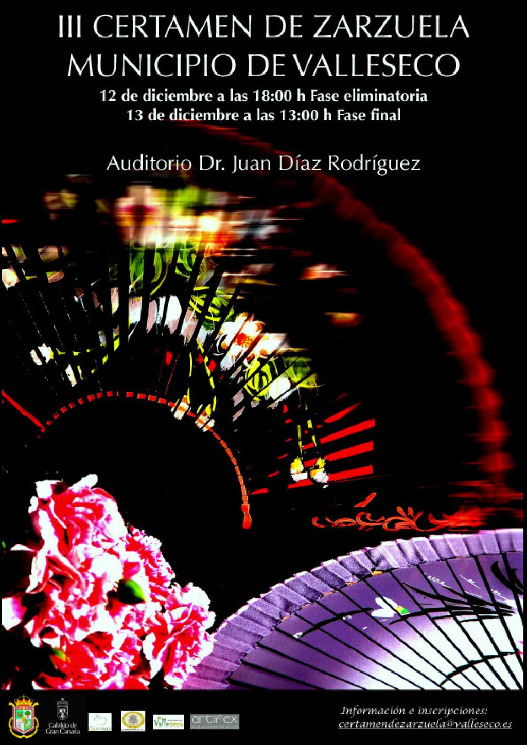 Hasta el próximo jueves 10 de diciembre está abierto el plazo para que los solistas puedan inscribirse en el III Certamen de Zarzuela, convocado por el área de Cultura del Ayuntamiento de Valleseco y la colaboración de Artifex Producciones Artísticas. Con el objetivo de dar a conocer solistas que recrean este género, a los que el paso por el certamen les suponga un escalón más en su trayectoria artística.