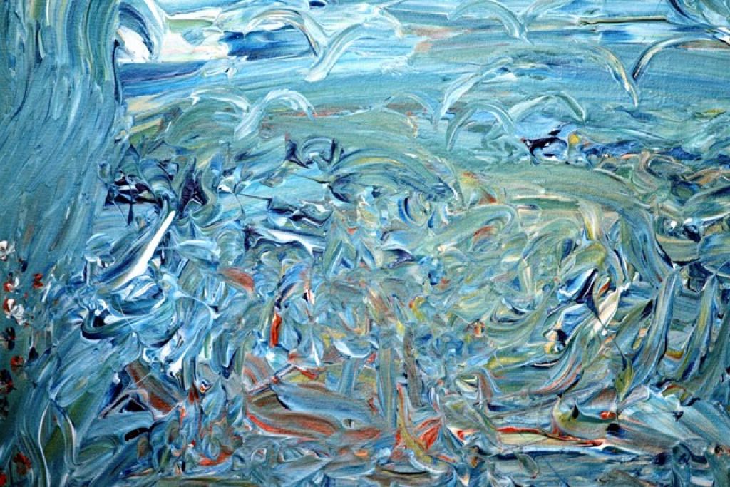 Descubrí esta técnica en el garage de mi casa, y es, sin duda, la técnica con la que más a gusto me siento. Mis dedos recorriendo el lienzo, en contacto directo con la tela, permitiendo a mis pensamientos plasmarse en colores, formas, contornos de todo tipo, libres a la interpretación del observador, sin ataduras. En esos momentos, en soledad, es cuando sale lo mejor de mi pintura.
