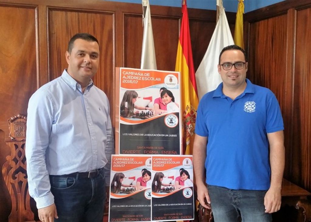 El Ayuntamiento de Santa María de Guía y la Escuela de Ajedrez Guía acercarán el ajedrez a cientos de escolares del municipio a través de un acuerdo de colaboración. El alcalde, Pedro Rodríguez, y el presidente de la citada Escuela, Francisco Falcón, presentaron esta iniciativa durante un acto celebrado en las Casas Consistoriales adelantando que además de las clases se celebrarán un conjunto de actividades paralelas entre los centros educativos que formen parte de la misma y un campeonato escolar.