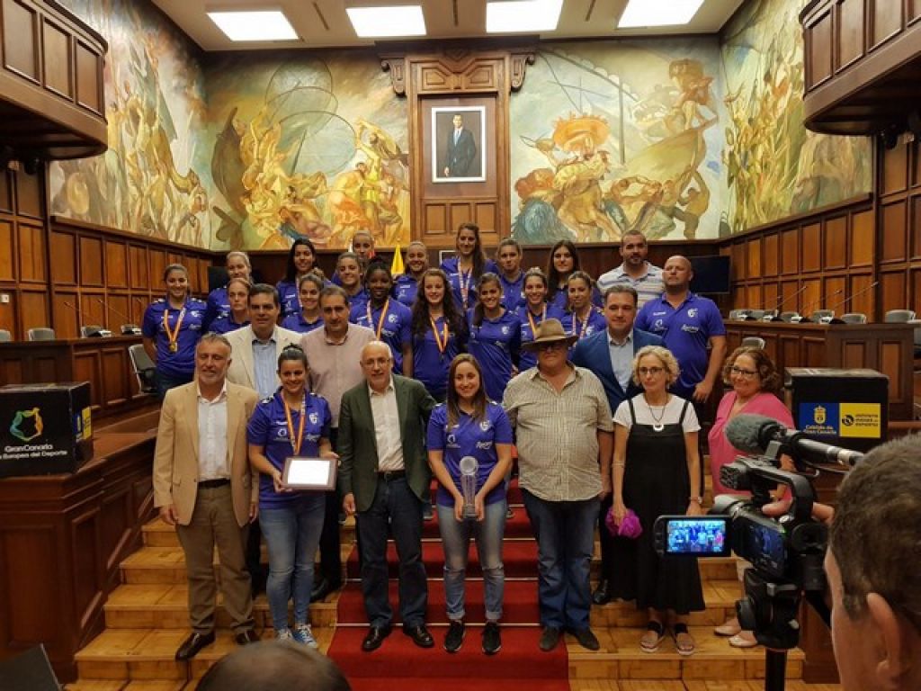 María González, capitana del equipo junto a Melania Falcón, agradeció el apoyo insular y prometió seguir dándolo todo antes de recoger de manos del presidente del Cabildo una placa conmemorativa por haberse proclamado el mejor equipo de la temporada para orgullo de la población de Gran Canaria.