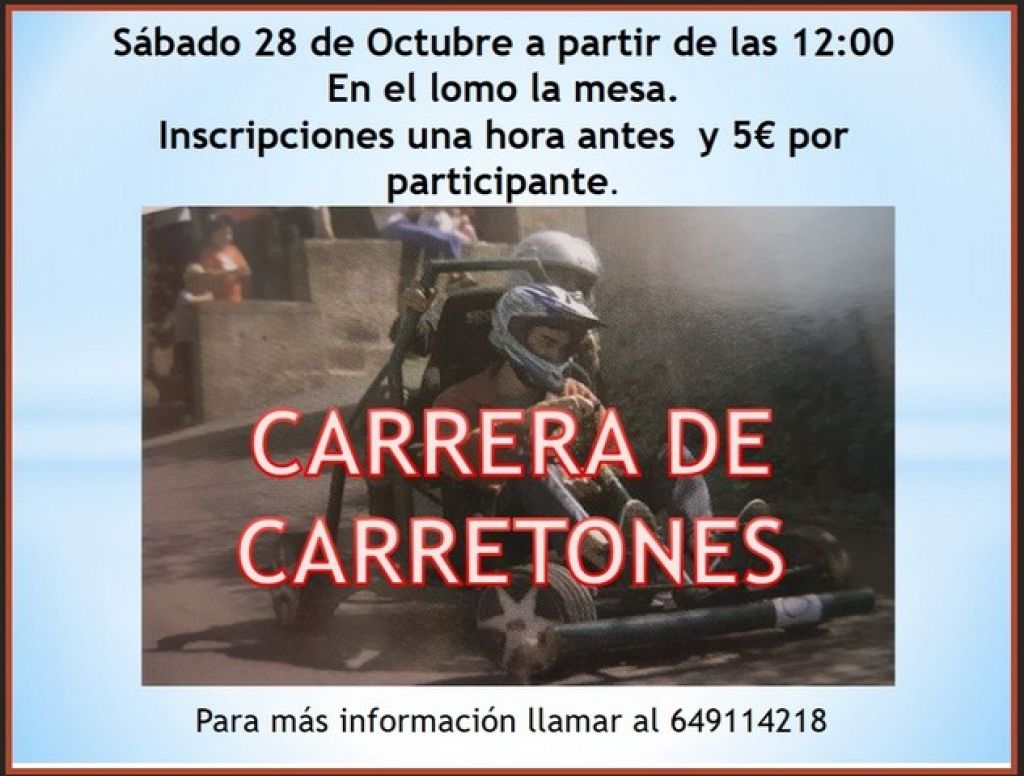 La Fiesta de La Castaña, en los pagos vallesequenses de Caserón, Carpinteras y Troyanas, vuelve a rugir los motores, con la prueba de carretones del próximo sábado 28 de octubre, ‘Bajada de Lomo La Mesa’, contando con los mejores pilotos de Gran Canaria y Tenerife, con el objetivo de conseguir el mejor tiempo de la prueba.