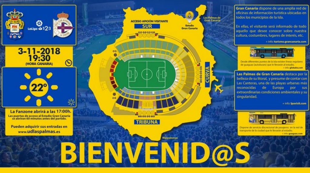 Hoy, sábado 03 de Noviembre del 2018, se podrá escuchar en las ondas de Radio Faro del Noroeste, FM 96.50 en el norte noroeste de Gran Canaria, y en su web www.radiofarodelnoroeste.es así como, por su APP Radio Faro del Noroeste, el partido de fútbol en directo que juega la UD. Las Palmas contra el RC Deportivo de La Coruña y que dará comienzo a las 19.30 horas en el Estadio de Gran Canaria.