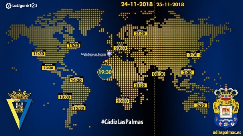 Hoy, sábado 24 de Noviembre del 2018, se podrá escuchar en las ondas de Radio Faro del Noroeste, FM 96.50 en el norte noroeste de Gran Canaria, y en su web www.radiofarodelnoroeste.es así como, por su APP Radio Faro del Noroeste, el partido de fútbol en directo que juegan el Cádiz CF y la UD. Las Palmas, que dará comienzo a las 19.30 horas en el Estadio Ramón de Carranza.
