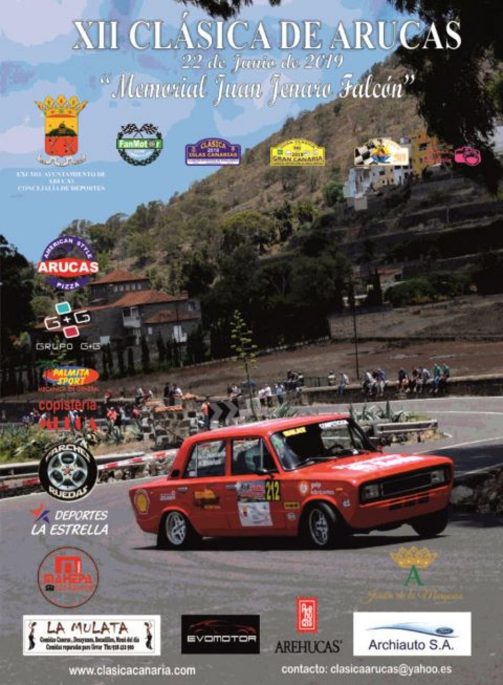 La XII Clásica de Arucas se disputará el sábado 22 de Junio bajo la organización del Club Fan Motor y la colaboración principal del Ayuntamiento de Arucas, el Hotel Rural la Hacienda del Buen Suceso, y una amplia lista de empresas colaboradoras del municipio. La Clásica de Arucas da continuidad XIII Copa Clásica Gran Canaria tras la celebración de la X Clásica Mecánica Venezuela así como a la XVI Clásica Islas Canarias tras la XVII Clásica Villa de Tegueste.