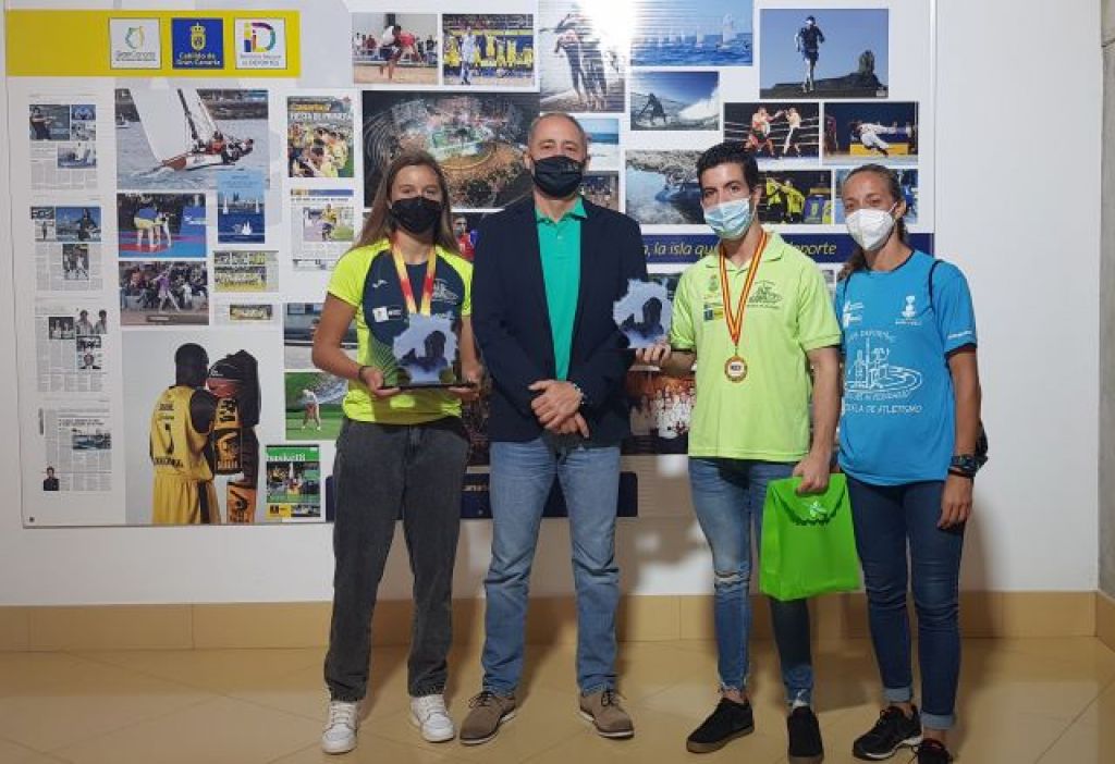 El consejero de Deportes del Cabildo de Gran Canaria, Francisco Castellano, recibió en la mañana de hoy a los jóvenes atletas Andrea Monroy y Óliver Rodríguez, tras conseguir las medallas de oro en el XX Campeonato de España de Atletismo Sub-16 y el Campeonato de España de Atletismo FEDDI 2021, en las modalidades de hexatlón y lanzamiento de jabalina, respectivamente.
