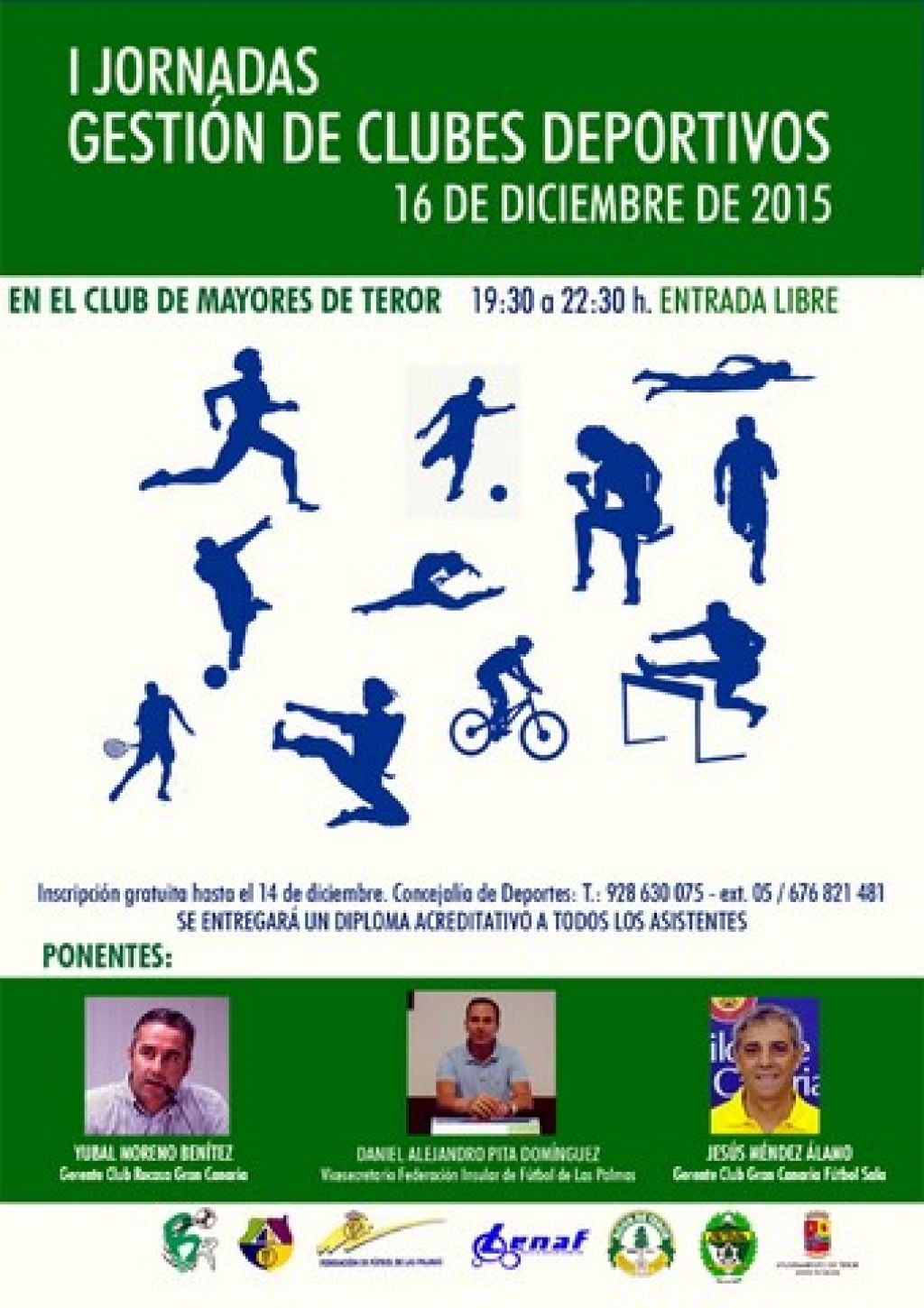 Teror acoge el próximo miércoles 16 de diciembre las I Jornadas de Gestión de Clubes Deportivos, dirigidas a todas aquellas personas interesadas en conocer o mejorar la organización y gestión de los clubes deportivos, especialmente directivos, entrenadores, técnicos de clubes o personas que quieran incorporarse a este ámbito. La Jornada organizada por el Club de Fútbol Sala Los Álamos – El Pino Aguas de Teror, con la colaboración del Ayuntamiento de Teror, tendrá lugar en el salón de actos del Club de Mayores de Teror en el horario de 19:30 a 22:30 horas y contará con las ponencias de Yubal Moreno, gerente del Club Rocasa Gran Canaria, Jesús Méndez, Gerente del Club Gran Canaria Fútbol Sala y Daniel Pita, Vicesecretario de la Federación Insular de Fútbol de Las Palmas. La inscripción es gratuita previa inscripción .
