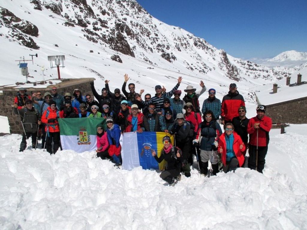 El grupo de senderismo de la Universidad Popular de la Villa de Moya acaba de regresar de Marruecos, tras intentar coronar nada menos que los picos del Toubkal (4167 metros), del Ras (4083 metros) y del Timesguida (2088 metros), en la cordillera del Atlas. De la mano del alpinista Javier Cruz y organizada por la Concejalía de Cultura del Consistorio norteño, la expedición formada por casi medio centenar de senderistas moyenses se adentró por primera vez desde que se creara este grupo en el año 2004, en una aventura de este tipo. Un periplo de una semana por uno de los sistemas montañosos más espectaculares del continente africano, donde se encuentra el pico más alto del Norte de África.
