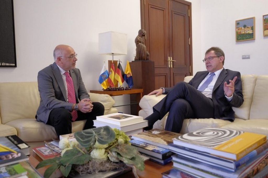 Asimismo, Morales expuso al embajador las posibilidades que ofrece Gran Canaria para los inversores alemanes, no solo en el sector turísticos, sino en los nuevos nichos que potencia el Cabildo de Gran Canaria para diversificar su economía con la investigación y la innovación como uno de sus pilares, lo que abarca desde energías renovables a la boyante economía azul, que pisan fuertes en el planeta y la Isla ofrece las mejores condiciones para el desarrollo de ambas.
