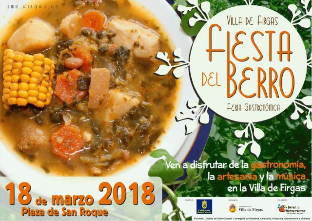 El próximo día 18 de marzo (Domingo) celebramos en la Villa de Firgas la tradicional FIESTA DEL BERRO DE FIRGAS, evento que pretende promocionar los productos y gastronomía locales, con especial atención en el berro como producto de enorme valor agrario y vinculado con la alimentación y la gastronomía, siendo la Consejería de Área de Industria, Comercio, Artesanía y Vivienda del Cabildo Insular de Gran Canaria, el órgano financiador de esta acción, en el marco de la convocatoria de subvenciones 2017 en materia de dinamización de Zonas Comerciales Abiertas de Gran Canaria.