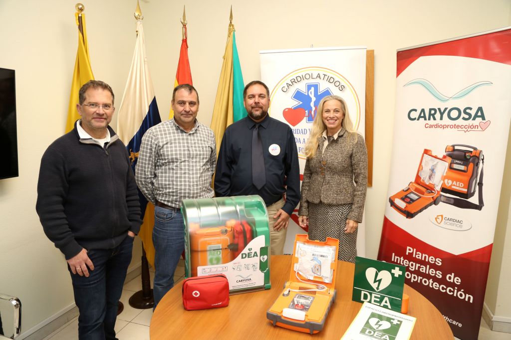 Aparatos que fueron presentados con la presencia de los concejales, José Luis Rodríguez y Francisco Rodríguez, la delegada en Canarias de Caryosa Hygienic Solutions, Karmele Pérez, y de Javier de La Nuez, Vicepresidente Nacional de Cardiolatidos.