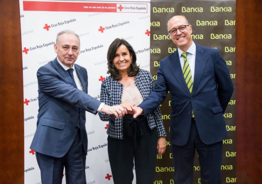 En la firma del acuerdo de colaboración, que se ha celebrado en la sede de Bankia en Madrid, han participado la directora general adjunta de Comunicación y Relaciones Externas de Bankia, Amalia Blanco; el director de Responsabilidad Social Corporativa de Bankia (RSC), David Menéndez, y el secretario general de Cruz Roja, Leopoldo Pérez.