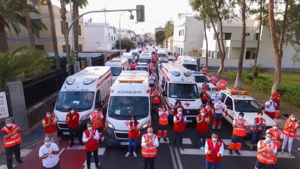 Cruz Roja Española en Las Palmas, viene sumándose a los actos de reconocimiento al personal sanitario y trabajadores que luchan directamente contra la pandemia del coronavirus Covid-19, junto al resto de los Cuerpos de Seguridad y Emergencias de Canarias.