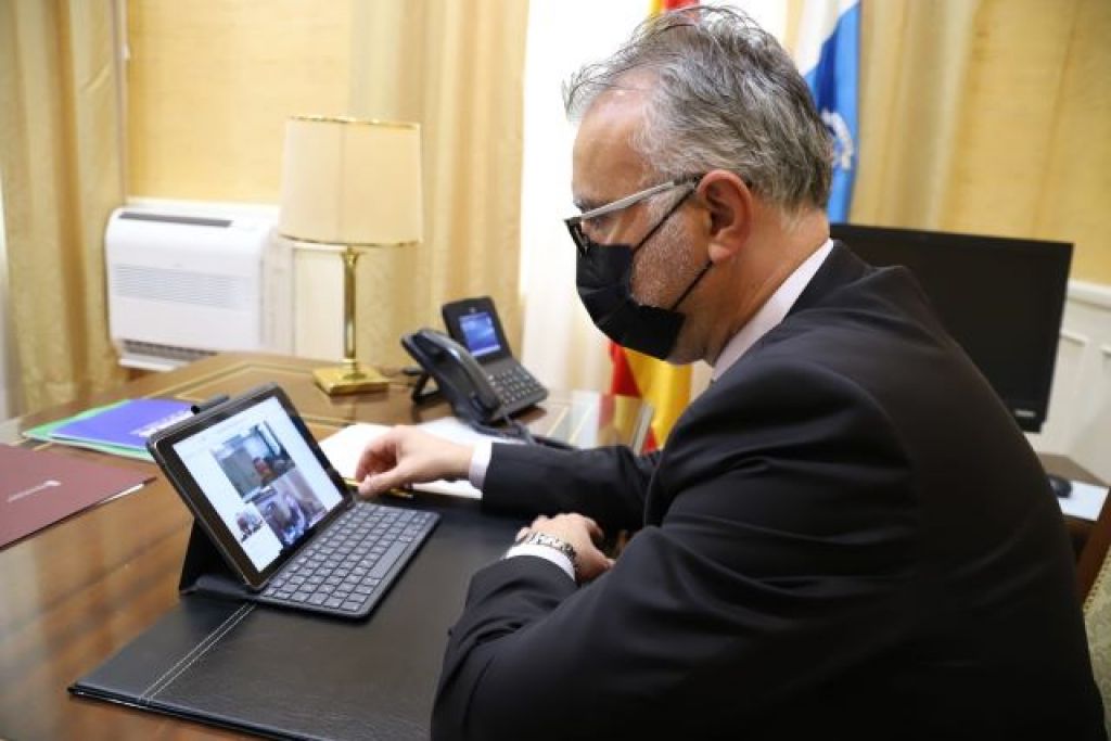 El presidente de Canarias, Ángel Víctor Torres, ha mantenido en la mañana de este jueves 17 de diciembre, desde la sede del Parlamento regional, una reunión por videoconferencia con el Defensor del Pueblo, Francisco Fernández Marugán, quien hace unos días inició una visita a las Islas para interesarse por el fenómeno migratorio con destino a Canarias.