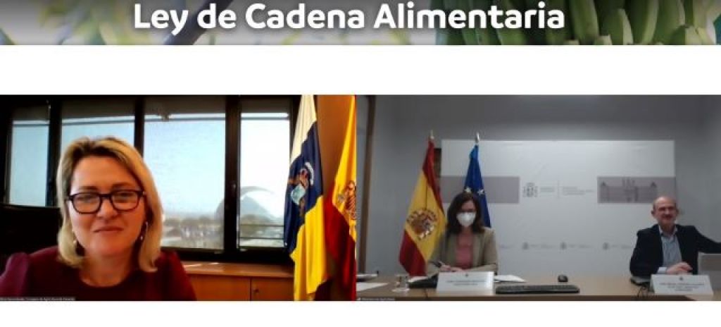 La Consejería de Agricultura, Ganadería y Pesca del Gobierno de Canarias y el Ministerio de Agricultura, Pesca y Alimentación abordaron en la tarde de hoy, jueves 18 de febrero, la Ley de Cadena Alimentaria en el marco de unas jornadas telemáticas para resolver las dudas y principales cuestiones de índole jurídica y económica como los precios y costes de producción que contempla el documento.