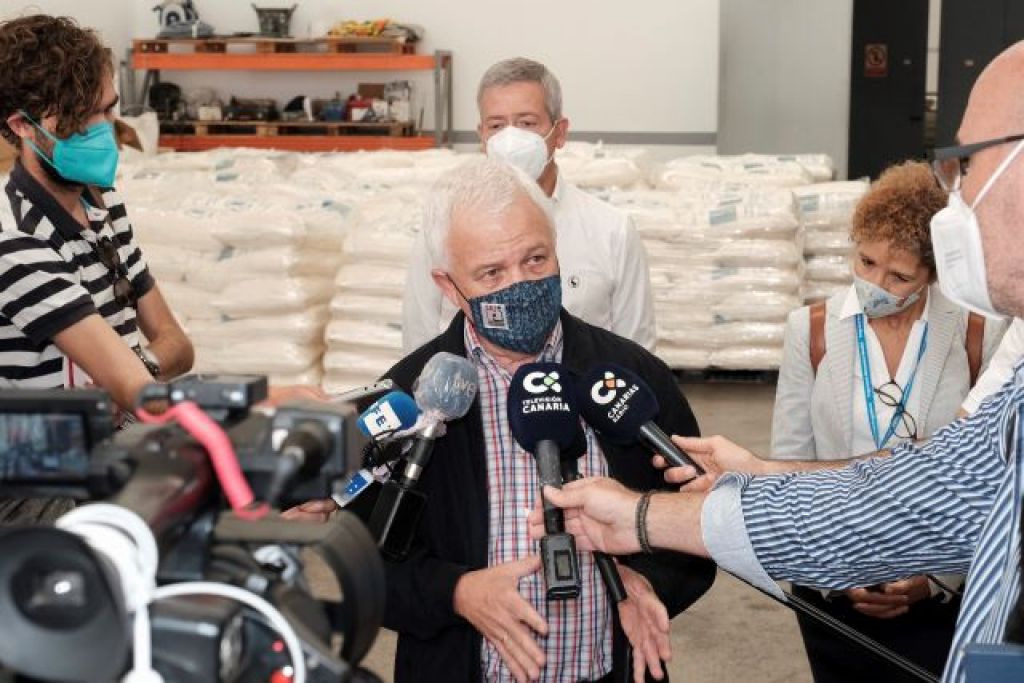 La producción se lleva a cabo en la fábrica de la adjudicataria Gofio ‘La Piña’, explicó hoy el consejero de Solidaridad Internacional del Cabildo, Carmelo Ramírez, en su corrido por las instalaciones para supervisar la próxima remesa junto al consejero de Hacienda, Pedro Justo, el delegado del Frente Polisario en España, Abdulah Arabi, el presidente de la Confederación Canaria de Empresarios, Agustín Manrique, y la delegada del Programa Mundial de Alimentos en Canarias, Ivelina Nunes.
