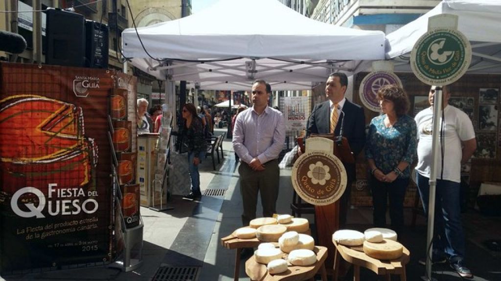 El alcalde de Guía, Pedro Rodríguez, presentó hoy el cartel de la Fiesta del Queso 2015 que se celebrará en este municipio el próximo 26 de abril, en el casco, y el domingo 3 de mayo en Montaña Alta. El primer edil guiense estuvo acompañado por la concejala de Cultura y Fiestas, María del Carmen Mendoza, y el coordinador de la comisión de fiestas de Montaña Alta, Tony Moreno. La presentación se celebró en la zona comercial de Triana, en la capital grancanaria, en un ambiente festivo que contó con música en directo de los timplistas Germán Suárez y Yone Rodríguez como antesala del espectáculo musical "Timples y otras pequeñas guitarras del mundo" que ofrecerán esta noche en el teatro Hespérides de Guía. La presentación contó además con diversos puestos para la compra y desgustación de quesos de Guía y un gran stand con paneles ilustrativos sobre el proceso artesanal que conlleva la elaboración de este producto artesanal.