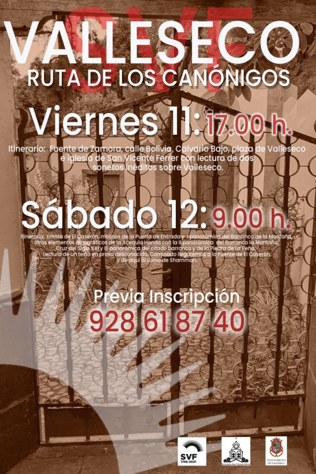 El Ayuntamiento de Valleseco, dentro de la programación de las Fiestas Patronales de San Vicente Ferrer y las efemérides del 275 aniversario de su llegada al municipio, a través del departamento de Cultura y la Biblioteca Municipal organizan para los días 4 y 5 de junio, unos paseos literarios de verano. Esta edición versará sobre Valleseco y la literatura en la primera mitad del siglo XX, realizando para ello la llamada “Ruta de los Canónigos”.