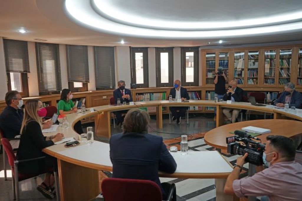 El vicepresidente del Gobierno, Román Rodríguez, y la consejera de Turismo, Industria y Comercio, Yaiza Castilla, se reunieron con las patronales Asofuer, Asolan, Ashotel y FEHT, acompañados por el viceconsejero de Hacienda, Planificación y Asuntos Europeos, Fermín Delgado, al objeto de concretar las ayudas a las que el Ejecutivo se había comprometido con el sector.