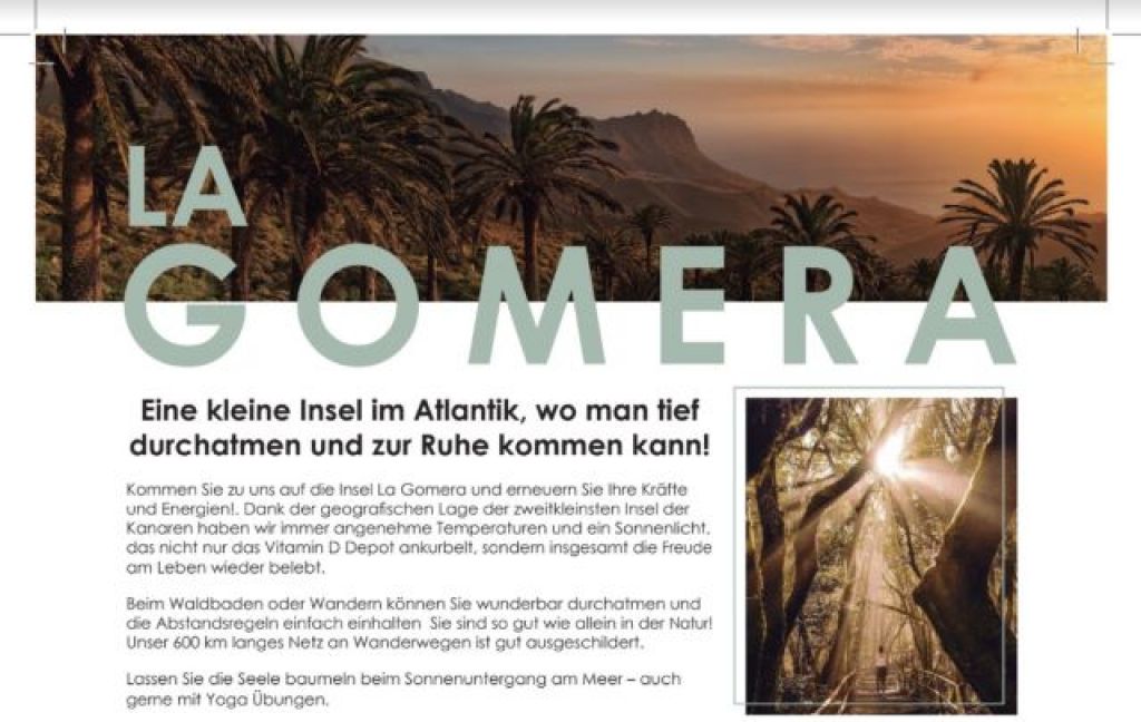 La revista Apotheken Umschau, distribuida en farmacias alemanas, publica un reportaje sobre La Gomera como destino seguro y de bienestar