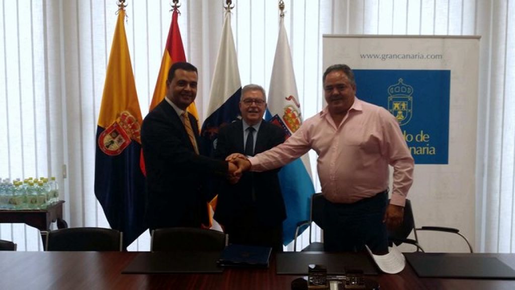 El alcalde de Guía, Pedro Rodríguez, firmó hoy un convenio con el presidente del Cabildo de Gran Canaria, José Miguel Bravo de Laguna, y el consejero de Agricultura, Francisco Santana, mediante el cual el Ayuntamiento ha logrado que el Consejo Insular se haga cargo de la puesta en marcha y la gestión de la Planta Desalinizadora Roque Prieto II. El complejo de desalación de la zona de Roque Prieto producirá un total de 10.000 metros cúbicos diarios de agua, garantizando así la producción a los agricultores y, además, la reducción del coste del agua de abasto a los guienses. Tras varios años de negociaciones, el Ayuntamiento de Guía ha logrado que el Consejo Insular asuma la puesta en marcha y la gestión de esta Planta cuya producción es de 5.000 metros cúbicos diarios de agua. El acuerdo ratificado hoy permitirá la explotación unificada de las desaladoras que componen el complejo de desalación de Roque Prieto, donde se encuentra la Planta Roque Prieto I, actualmente en funcionamiento, y con una producción de 5.000 metros cúbicos diarios.