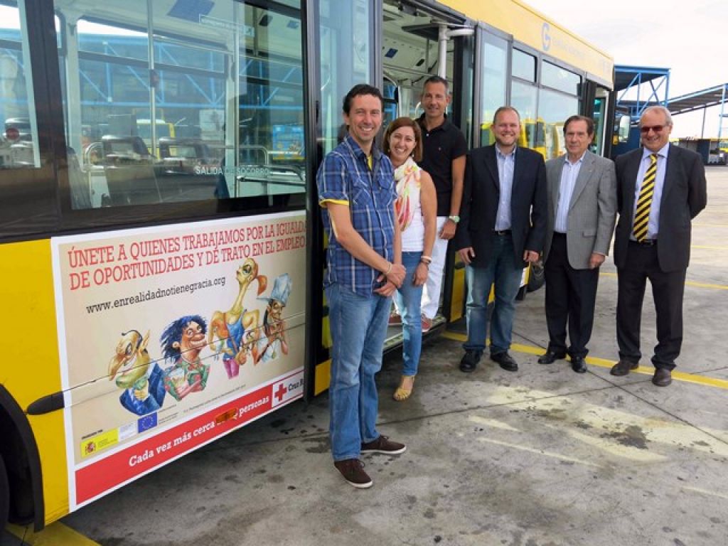 Guaguas Municipales promociona en sus vehículos la campaña 'En realidad no tiene gracia' de Cruz Roja, que reivindica la igualdad de trato y oportunidades en el mercado laboral