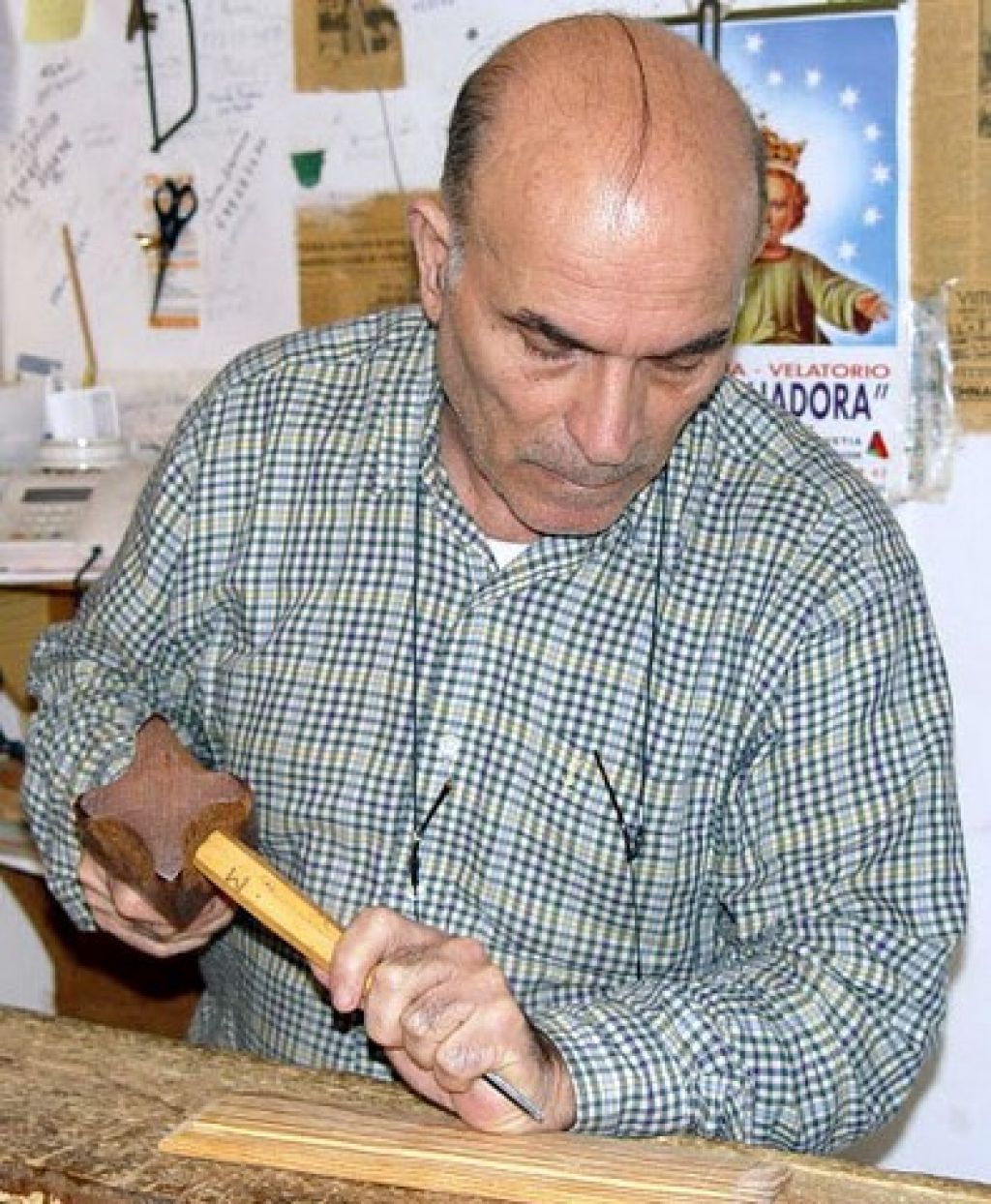LOS CUATRO ARTESANOS. Manuel Díaz Medina nació en Gáldar en los años 50. Empezó con la talla a los 13 años. Su primera pieza fue una Virgen que hizo en 1968, a la edad de 18 años, mientras trabajaba con los hermanos Osorio. Cogiendo experiencia en el arte de la escultura y otros conocimientos. Con José de Armas, escultor de Agaete, perfeccionó sus conocimientos. Ha combinado el oficio de tallista con el de carpintero en numerosas empresas de Gáldar, Guía, Teror, Las Palmas de Gran Canaria, Lanzarote, Sáhara, País Vasco y Portugal, entre otros lugares.