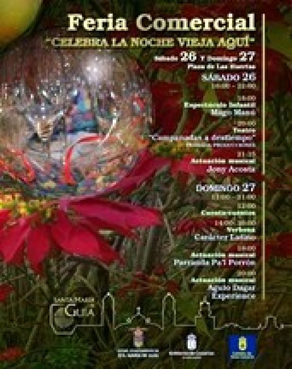 Hoy sábado 26 y mañana domingo 27, se celebra en Santa María de Guía la Feria Comercial "Celebra la Noche Vieja con nosotros en Santa María de Guía" , en la zona de Las Huertas, será un escaparate de la oferta comercial y de servicios que existe en la zona Norte para celebrar esta fecha tan señalada: moda de fiesta, pirotecnia, cotillones, peinados para la ocasión, etc., a lo que se sumará una gran variedad de stands con artículos para completar las compras navideñas de grandes y pequeños.